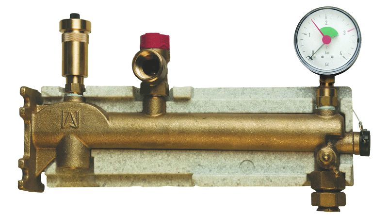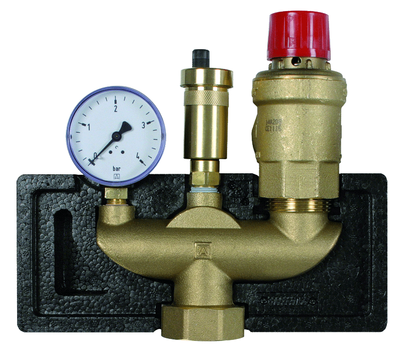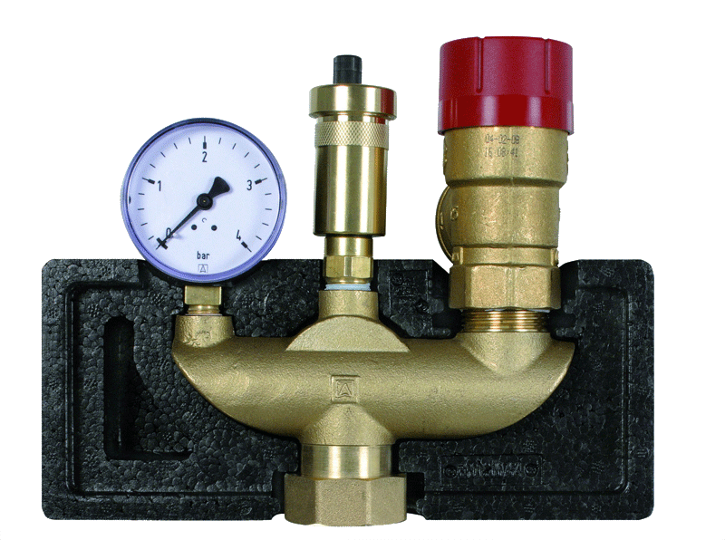 Группа безопасности котла. Предназначена для закрытых отопительных систем мощностью до 100 кВт.